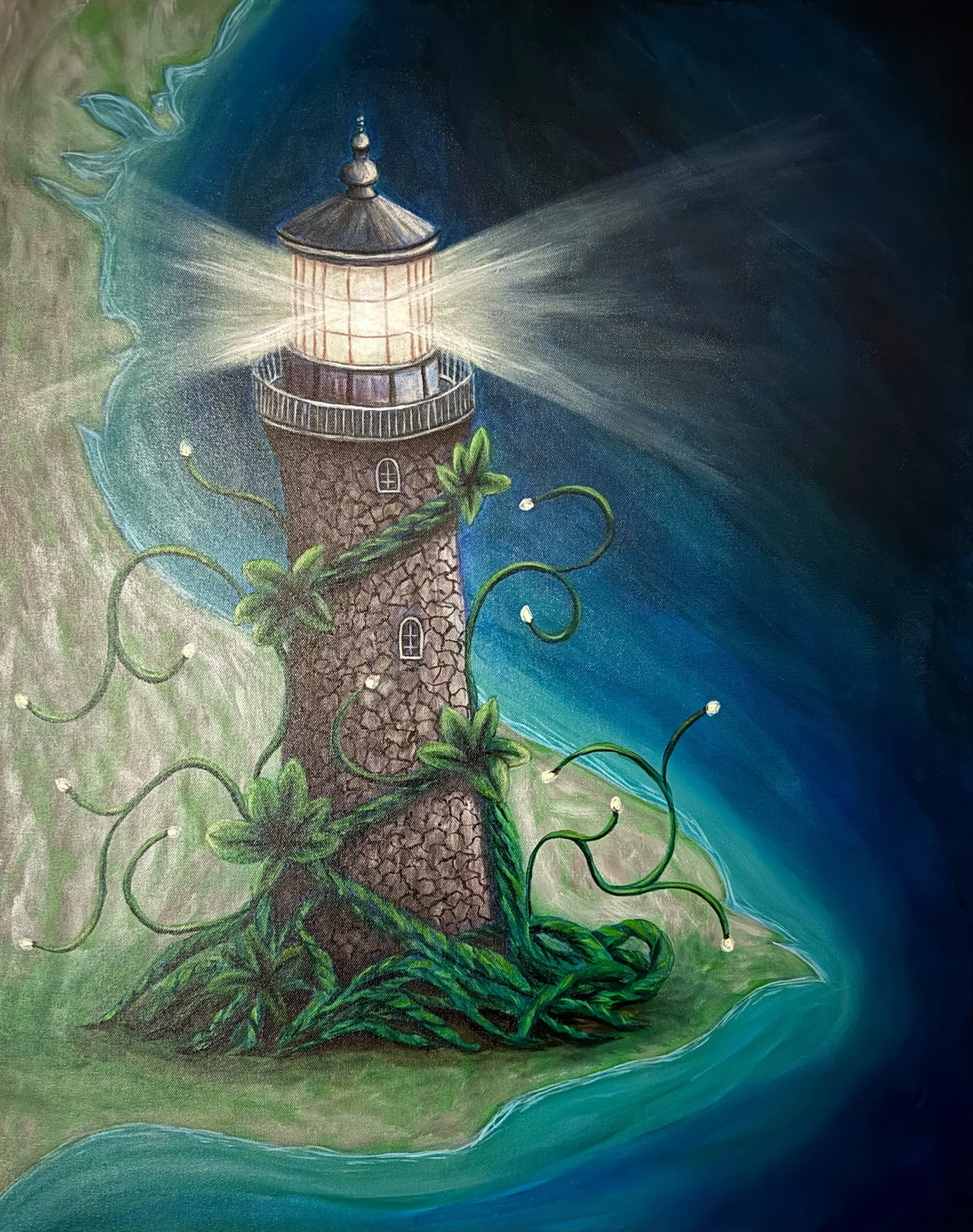 I believe God is calling our church to be a lighthouse to the region, hence the coast line of GA where you see the lighthouse encompassing this area. The Lord also impressed upon me the concept of Him being the vine and how we are the branches. This vine of abiding was wrapped around the lighthouse and was also bringing light through its people. This is also a reflection of the seed that has been placed in the ground by previous generations and what is to come in the next. See John 15:1-17 …